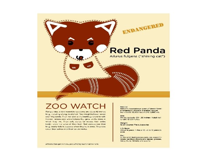 Assignment: Create a poster for an endangered animal that includes: § The name of your animal § Why is it endangered § Where it lives § What is being done to save it § A conservation message
