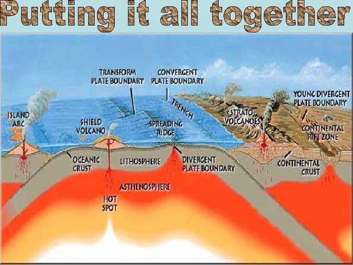 • Lithosphere—upper mantle and crust • Asthenosphere— hot upper part of mantle • Ocean crust— thinnest crust, very dense • Continental crust— thickest crust, not as dense