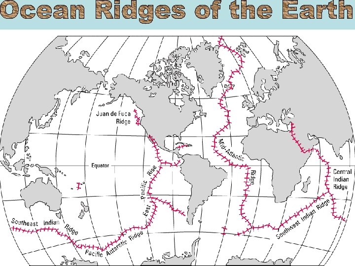 SEA FLOOR • Scientists started mapping the ocean floor in the 1950’s, • At the center of the ocean, They found huge underwater mountain ranges, This was a surprise because they expected the ocean to be flat in the middle of the ocean • Scientists called the huge underwater mountain ranges Mid. Ocean Ridges.