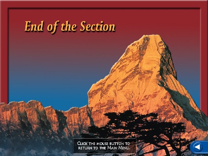 To navigate within this Interactive Chalkboard product: Click the Forward button to go to the next slide. Click the Previous button to return to the previous slide. Click the Chapter Resources button to go to the Chapter Resources slide where you can access resources such as assessment questions that are available for the chapter. Click the Menu button to close the chapter presentation and return to the Main Menu. If you opened the chapter presentation directly without using the Main Menu this will exit the presentation. You also may press the Escape key [Esc] to exit and return to the Main Menu. Click the Help button to access this screen. Click the Earth Science Online button to access the Web page associated with the particular chapter with which you are working. Click the Speaker button to hear the vocabulary term and definition when available.