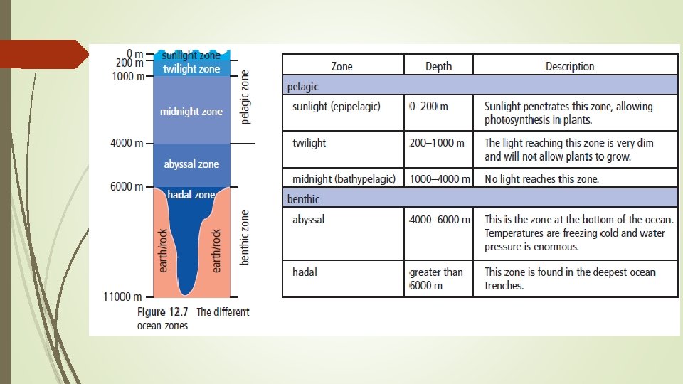 Saltwater Environments Benthic Zone: – This zone is the deep ocean zone. Where water temperatures are very cold and most animals hunt and eat other animals to survive as there is not enough light to support plants