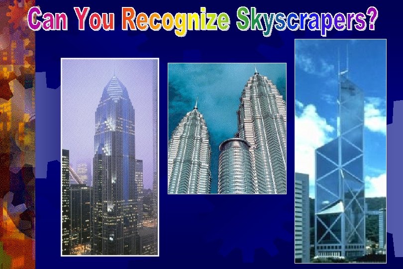 History of the Skyscraper ® Today’s skyscraper’s have “skeletons” made of steel which carries all the weight ® This had allowed us to to build exciting structures and allowed us to reach new heights Trans America Building San Francisco (1972) 853 ft