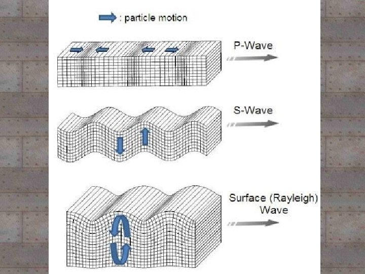 Types of Seismic Waves -Primary (P) waves: push-pull motion. -fastest -1 st to be detected -travel through solids & liquids