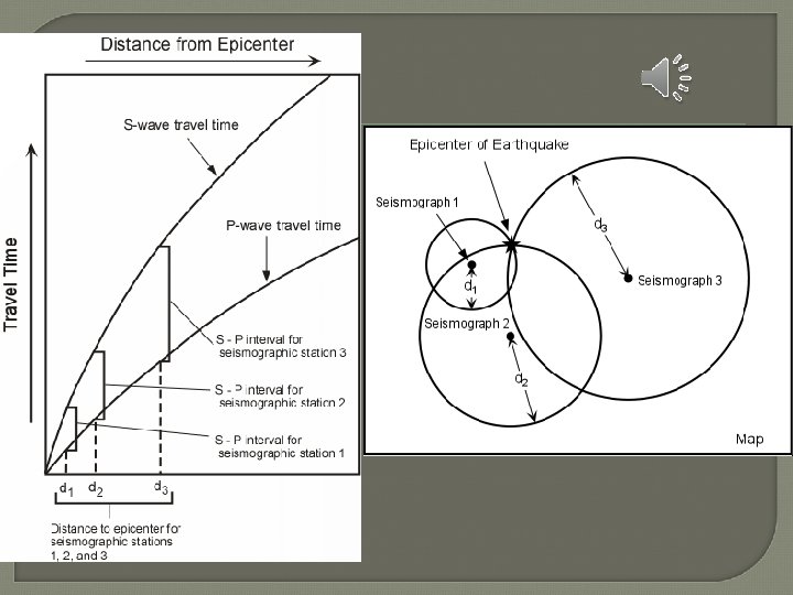 2. Find on the time-travel graph where 5 minutes is the interval 3. Travel to the X-axis, this is the earthquake distance You now know how far away from the seismograph the epicenter is. But you DO NOT know the DIRECTION Could be North, South, East or West How do you locate EXACT location of epicenter?