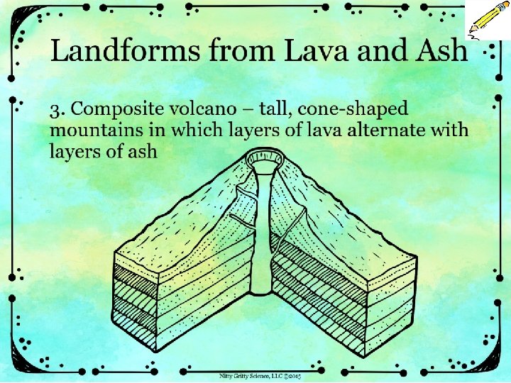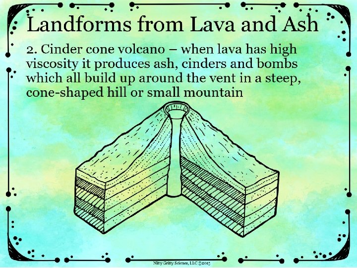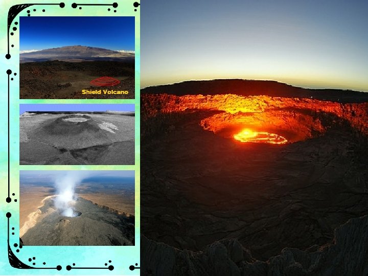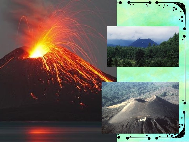 dormant volcano – not active, but may become active extinct volcano – unlikely to erupt again