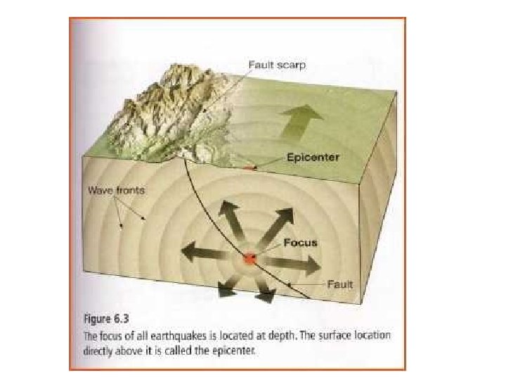 Focus • The location beneath the Earth’s surface where the faulting of the Earthquake occurred – It is beneath the Earth’s surface at some depth (focal depth) – Where the faulting occurs