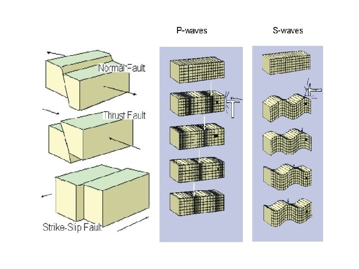 P-Waves • Primary Waves (they arrive first) • They travel with the fastest speed • Compressional Waves (Push-Pull Waves) – Wave motion is the same as direction of travel • Travel through solids, liquids, and gases