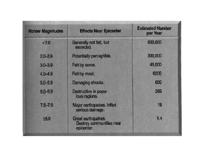 How Bad Was It? • The Richter Scale is used to describe the amount of shaking – Based on the magnitude of the waves • The Mercalli Scale is used to describe the amount of damage the earthquake causes – Depends upon the location of the earthquake – Depends upon the population