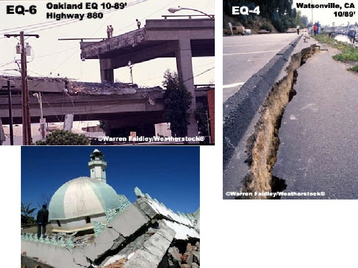 Fault Zones—New Madrid • New Madrid fault line—New Madrid, MO— 120 miles southward on I-55 • 1811/1812—most widely felt series of E. Q. in U. S. history (2000+) • Five were 8. 0+ • Ancient fault zone deep in crust of Mississippi River region