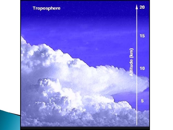 Layers of the Atmosphere � Troposphere ◦ ◦ ◦ Tropo- = “change” Lowest layer Densest layer Contains almost 90% of the atmosphere’s mass Where weather occurs Where we live