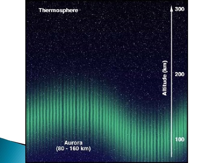 The Ionosphere � Nitrogen and oxygen atoms in upper mesosphere and thermosphere react to solar radiation � Become electrically charged ◦ Ions – electrically charged particles � Seen as shimmering lights called auroras � Reflects AM radio