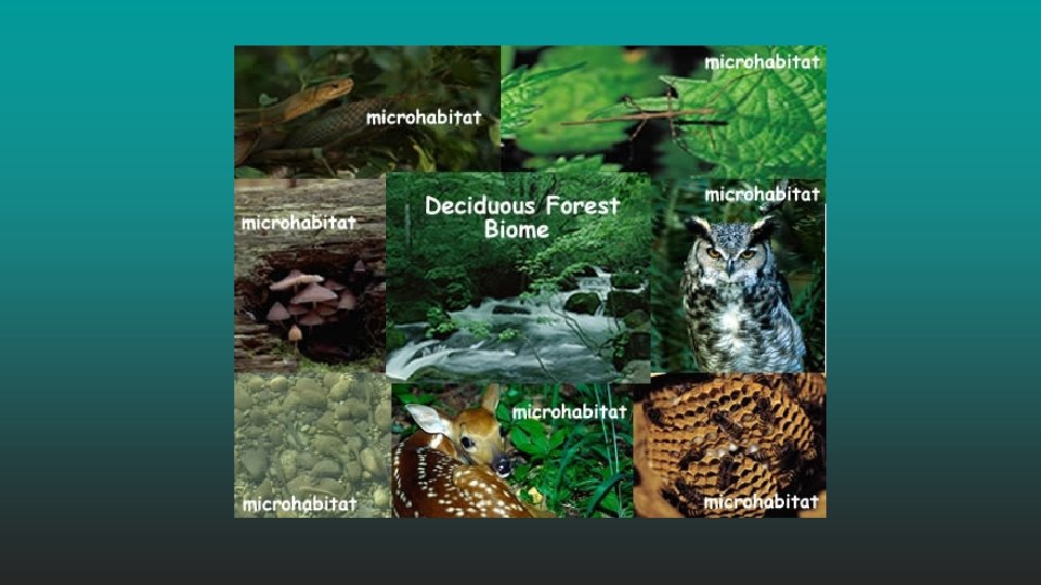 c. Deciduous forest/Mixed woodland • Location: between 30 -60°N latitude; all over world. • Sunlight: more than Taiga; climate is more moderate. • Soil: very fertile soil, lots of precipitation. • Plants: huge variety of plants– sunlight fits floor for shrubs, flowers, deciduous trees. • Animals: insects, birds, squirrels, rabbits, deer, fox.