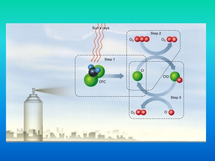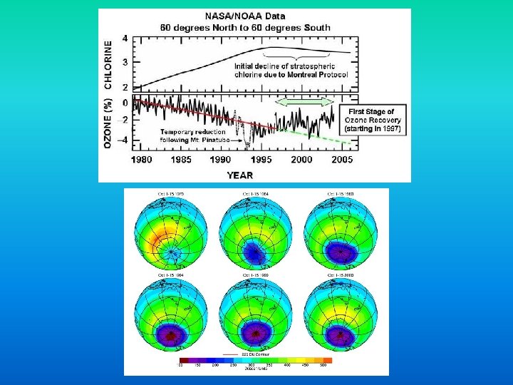 The Ozone Hole • “Discovered” in 1985 • Linked to CFC release into atmosphere • 1987 Montreal Protocol banned these substances • Steady “healing” of the layer