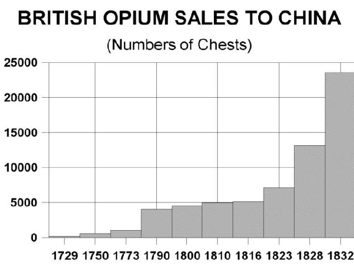 Opium War • British introduced opium to the Chinese to solve the problem of the trade imbalance • Chinese became addicted to opium