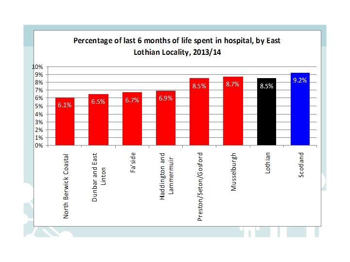 Promoting integrated working and choice and control • Development of a multidisciplinary education programme for East Lothian care homes with a focus on end of life care • Develop a model of care for care homes which supports and enhances GP practice input • Development of joint, integrated health and social care teams, starting with the “ELSIE” team and an East Lothian mental health team. • Carry out a review and audit of the Care at Home service framework. • Progress negotiations on Care Home contracts. • Increase the number of Palliative Care summaries and Key Information summaries shared with Out of Hours services.