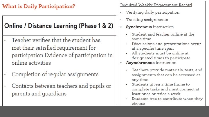 Why Distance Learning ● San Joaquin County is on the state monitoring list ● Counties must be off the monitoring list for 14 days before we can consider reopening school. ● We are following the advice of public health officials. ● We all want to get back to school safely for our students and staff Por qué el aprendizaje a distancia ● ● El condado de San Joaquin está en la lista de monitoreo estatal Los condados deben estar fuera de la lista de monitoreo durante 14 días antes de que podamos considerar la reapertura de la escuela. todo el primer trimestre del año 20 -21. Seguimos los consejos de los funcionarios de salud pública. Todos queremos regresar a la escuela de manera segura para nuestros estudiantes y personal