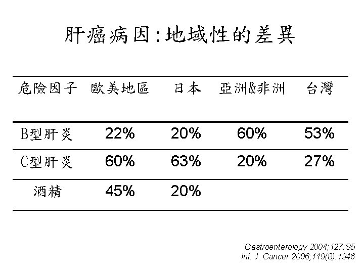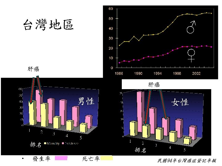 發生率 & 死亡率 Eastern Asia 東亞地區 男性 女性 Middle Africa Eastern Africa Less developed countries Melanesia South-Eastern Asia World More developed countries Western Europe South America 發生率 死亡率 Globocan 2002