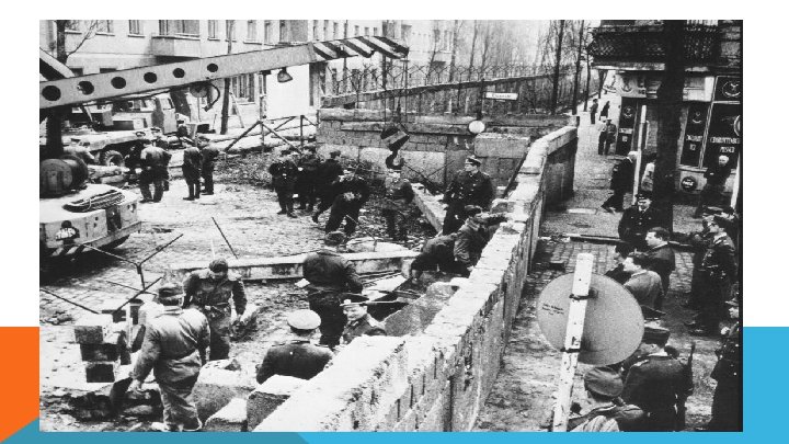 • • • Riots and protests break out in East Germany. Border countries allow migration East Germans storm the wall. Confused and outnumbered, border guards do not fight back. The wall is breached. Eventually East and West Germany are reunited in 1990. https: //www. youtube. com/watch? v=ube 21 r 7 l 2 o. M