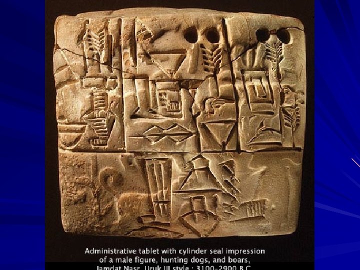 Cuneiform dates to 3100 BC and was developed by the Sumerians wedge-shaped markings on clay tablets – Over # symbols – Pictograms that eventually developed into symbols representing complex ideas. scribes – studied at schools called Eddubas. – Scribes rose to high position in society – produced business records, listed historical dates and some literary works were written.