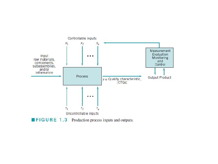 Week 1 2 3 4 5 6 7 8 9 10 11 12 13 14 15 16 Topics Review and preliminary subjects Control charts for fraction nonconforming p, np, c and u charts CUSUM charts and average run length Midterm Exam Quality improvement and total quality control Experimental and fractional factorial design The Taguchi method, off-line and on-line quality control, Parameter design Acceptance sampling, Producer’s and Consumer’s risks AQL, LTPO and AOQL systems Dodge-Romig System, Economic analysis of acceptance sampling Demonstration of software (SPSS, Minitab) Final Exam