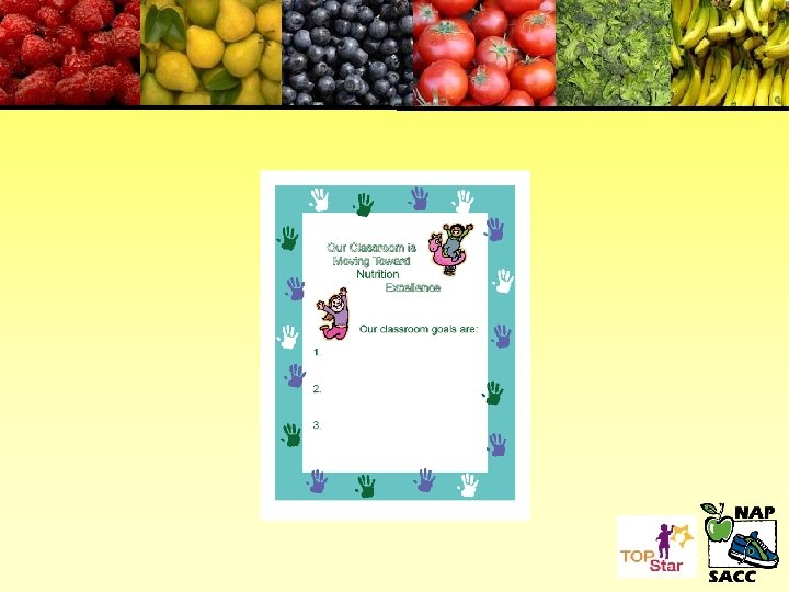 Nutrition Education for Staff, Children, and Parents n If children hear the same health messages from parents and from child care providers, they’re more likely to listen. n There are several curricula available to help staff incorporate nutrition education into lesson plans n Look for opportunities to provide nutrition education for staff and earn continuing education credits at the same time.