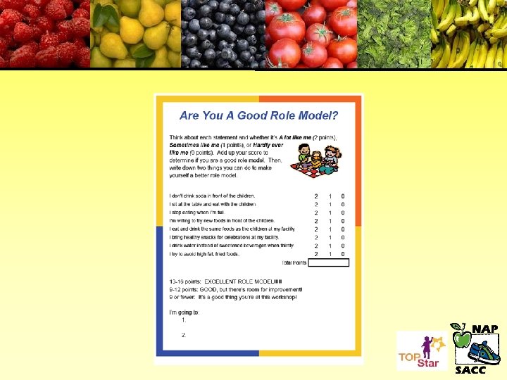 Nutrition Activity Child care providers are role models for healthy eating. How can you be a good role model for the children?