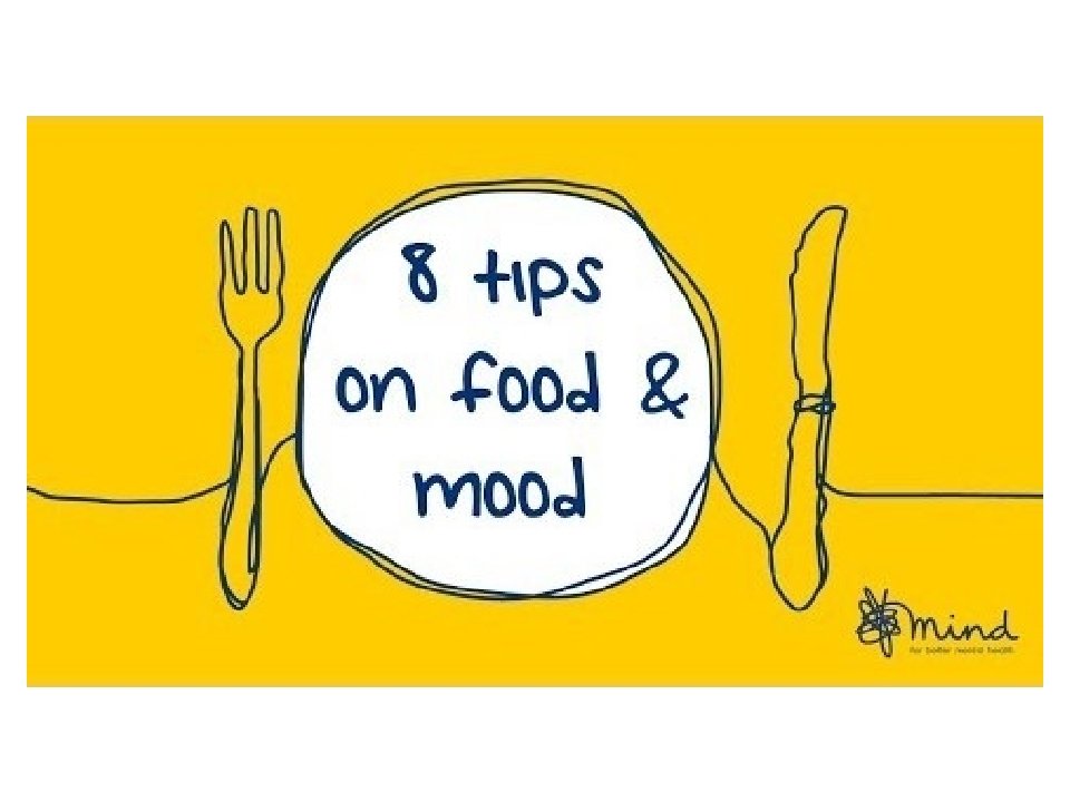 Food and Mood • Consistent meals and mealtimes • Skipping meals = low energy • Blood sugar fluctuations = mood swings • Regularly eating breakfast = maintains a healthy body weight • The importance of carbohydrates • Carbohydrates produce serotonin • Keeping hydrated • Improves cognition, mood and quality of sleep