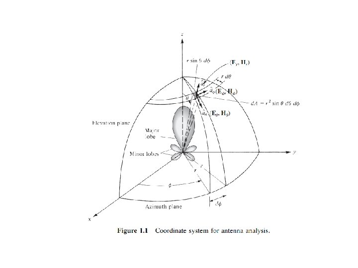 Radiation Pattern Lobes • A radiation lobe is a “portion of the radiation pattern bounded by regions of relatively weak radiation intensity. ” A major lobe (also called main beam) is defined as “the radiation lobe containing the direction of maximum radiation. ” A minor lobe is any lobe except a major lobe. A side lobe is “a radiation lobe in any direction other than the intended lobe. ” A back lobe is “a radiation lobe whose axis makes an angle of approximately 180◦ with respect to the beam of an antenna. ”