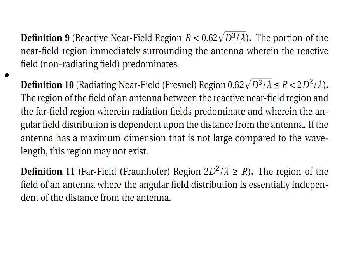 Input impedance • Input impedance is defined as “the impedance presented by an antenna at its terminals or the ratio of the voltage to current at a pair of terminals or the ratio of the appropriate components of the electric to magnetic fields at a point. ”