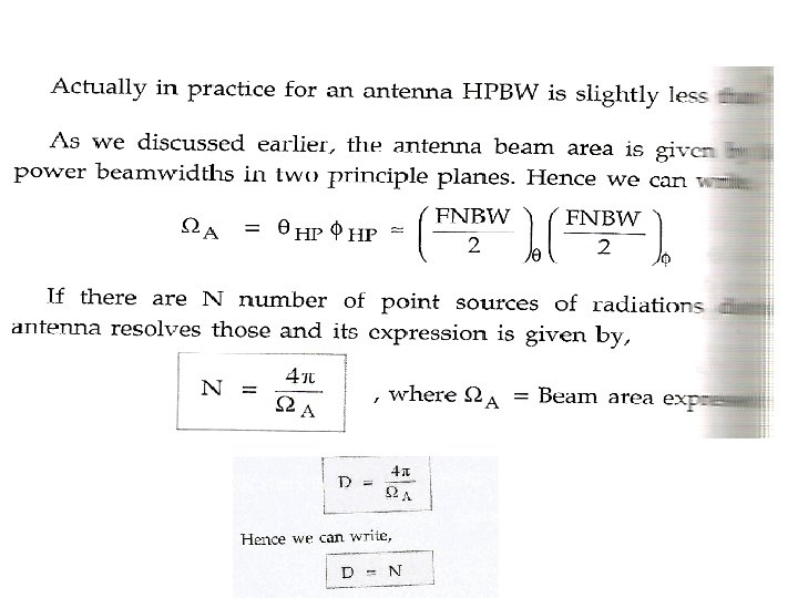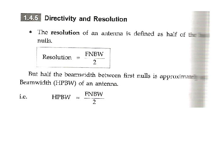 Beamwidth • The beamwidth of a pattern is defined as the angular separation between two identical points on opposite sides of the pattern maximum. • half-power beamwidth (HPBW), which is defined by IEEE as: “In a plane containing the direction of the maximum of a beam, the angle between the two directions in which the radiation intensity is one-half value of the beam. ”