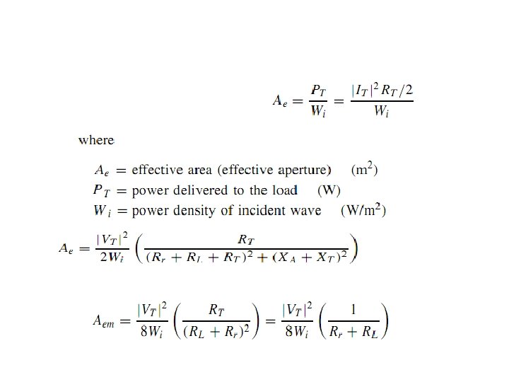 Effective Aperture • is defined as “the ratio of the available power at the terminals of a receiving antenna to the power flux density of a plane wave incident on the antenna from that direction, the wave being polarization-matched to the antenna.