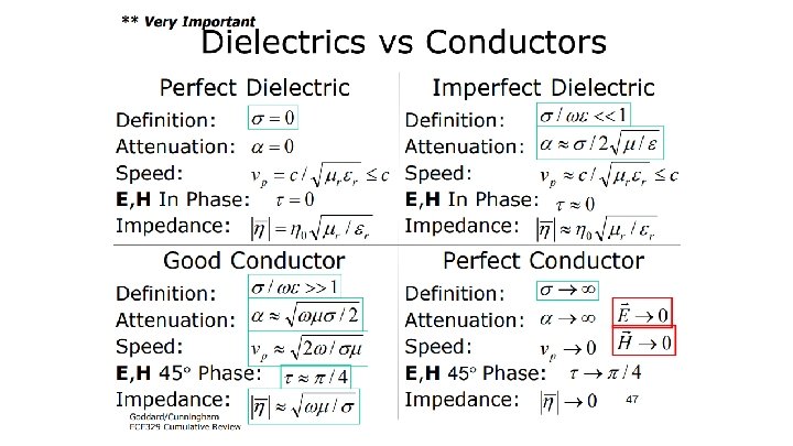 Wave Properties in Material Media ● Propagation constant ● Impedance
