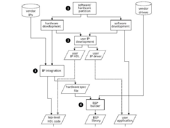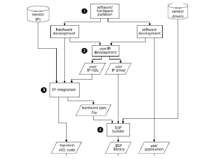 The Embedded So. C Design Process • Partition the tasks to software routines and hardware accelerators • Design user custom IP cores if needed • Develop the hardware • Develop the software • Implement the hardware and software and perform testing