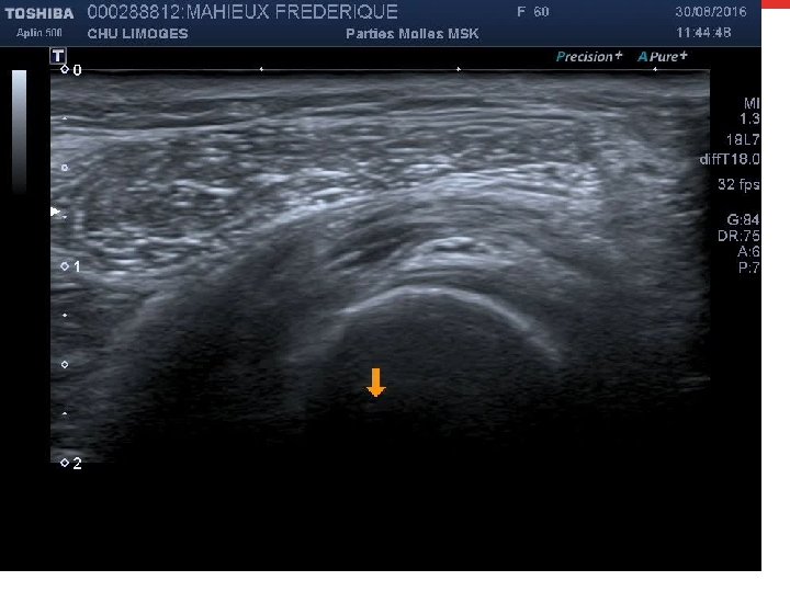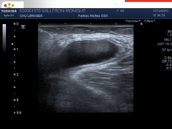Cas clinique 2 (suite) • Elargissement de l’interligne de l’acromioclaviculaire • Hyperhémie en doppler Séquelles d’entorse de l’acromioclaviculaire Traitement: Infiltration échoguidée de l’acromioclaviculaire