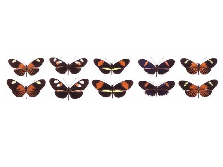 Mimetismo Batesiano Se da cuando una especie “inocua” o “agradable” mimetiza o se asemeja a una especie “venenosa” o “desagradable”, ganando asi su proteccion de los depredadores. Evolucion hacia un Patron de color Aposemático Mimetismo Mulleriano Se da cuando dos especies “venenosas” o “desagradables” se asemejan, por coevolucion, logrando un patron de coloracion, que les da ventaja y proteccion de los depredadores. Aposemático. Co-mímico. Anillos miméticos.