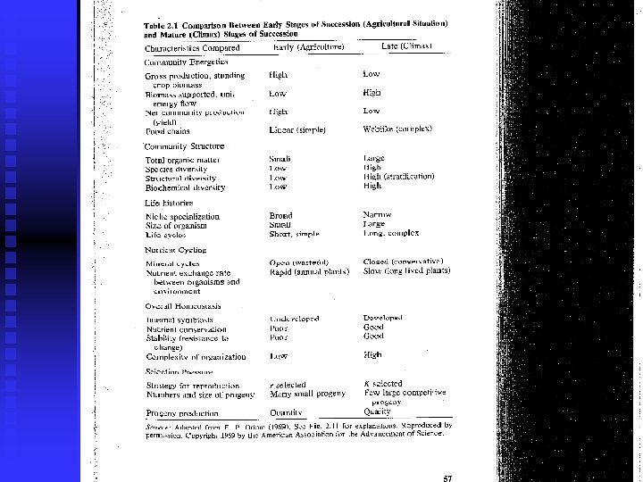 Ecological Concepts Community succession n Initial dispersers - wind dispersed seed dandylions, thistles, milkweed, n Later - shrub seeds, tree seeds - carried by birds. n r - reproductive strategy n K - competitive strategy n