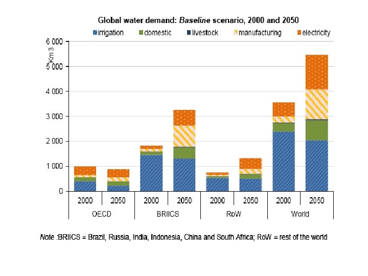 National Water Footprint for selected countries, in cubic meters person per year 3000 2500 2000 1500 Agricultural goods Industrial goods 1000 Domestic water consumption 500 C hi na In di Ja a Pa pan k In ista do n ne si a Br az M il ex i R co us Th sia ai la nd Ita ly U SA 0