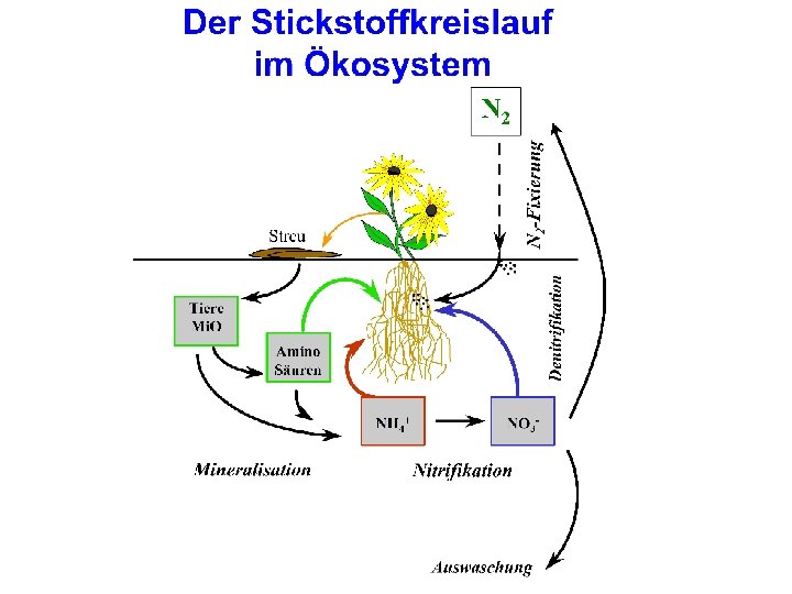 N-Turnover in Soils hn N atmosph. PLANT Rhizodeposition, Litter Free Amino Acids Feedback POM DOM Protease BR, SIR MESOFAUNA Mi. O NH 4+ Urease NO 3 Steering influence Mass Transfer