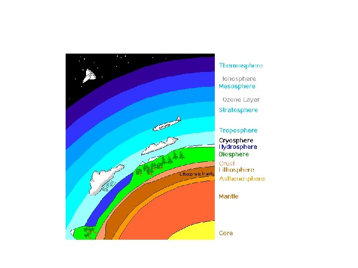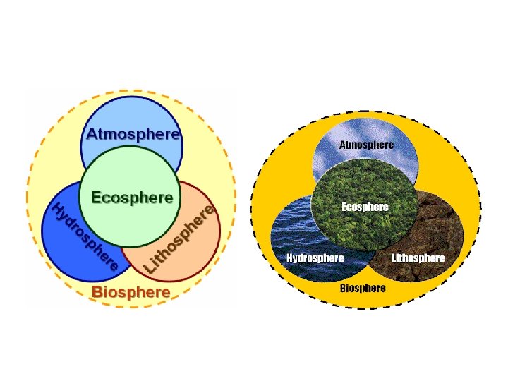 Biosphere • The set of interactions between the atmosphere, the hydrosphere, the lithosphere and the ecosphere.
