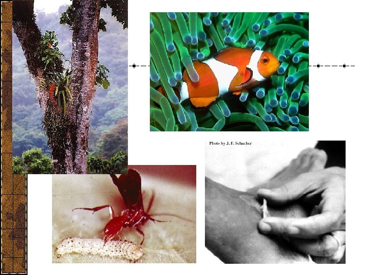 Symbiotic Relationships Parasitism One organism gains One organism harmed Parasitoid One organism gains One organism killed Mutualism One organism gains Commensalism One organism gains One organism is unaffected
