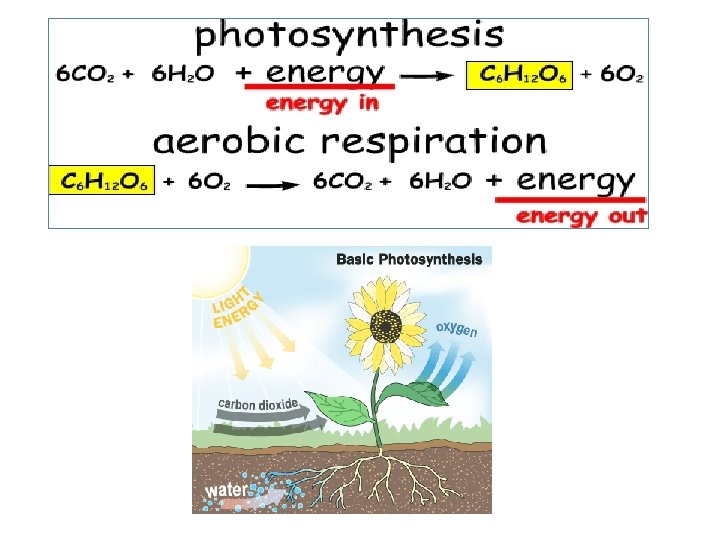 Carbon Cycle Terms • Photosynthesis = carbon (CO 2) in air carbon in plants (glucose, C 6 H 12 O 6) + oxygen • Respiration = cells take in oxygen + glucose CO 2 + H 2 O • Eating = organisms use carbon in food to grow more cells in their own bodies