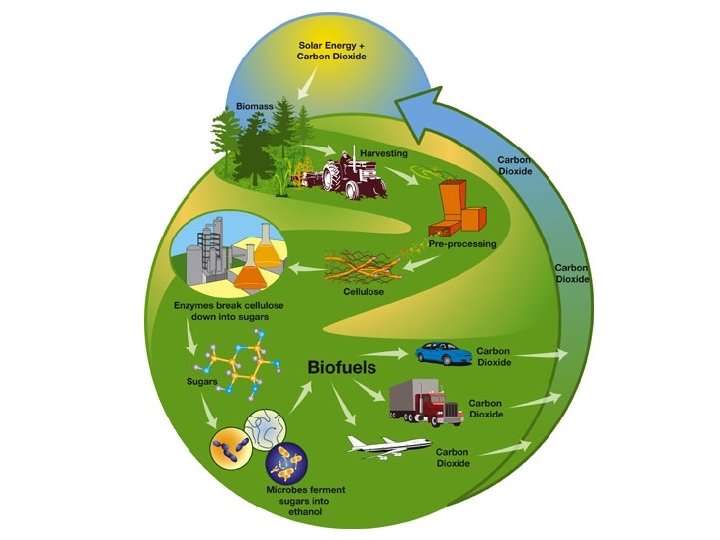 Closed Carbon Cycle • Closed carbon cycle = carbon burned originated in atmosphere and can be replaced within a human lifetime • Example: burning wood, biofuel • Cellulose ethanol • Biodiesel • Wood chips • Torrification/gassification