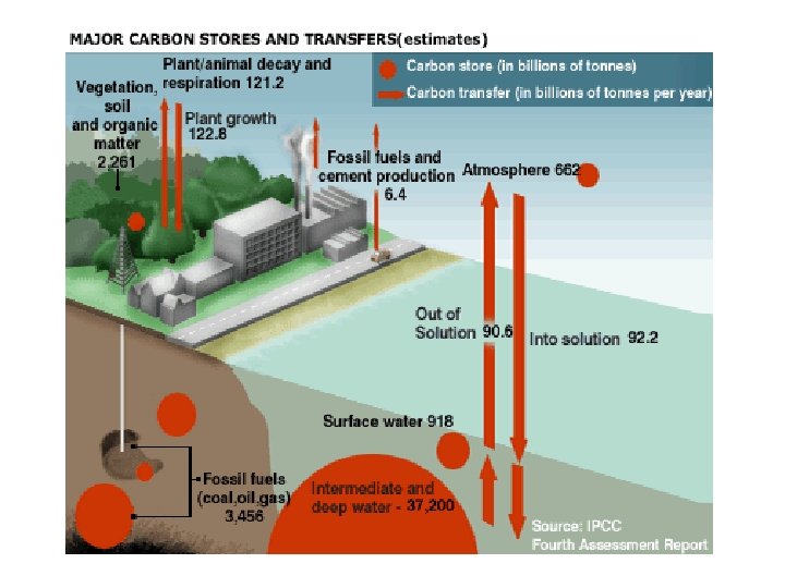 Carbon Cycle Terms • Atmospheric CO 2 = carbon dioxide in atmosphere (comes from fuel combustion, burning, respiration) • Dissolved CO 2 = carbon dioxide in bodies of water (comes from respiration of bacteria and fish)