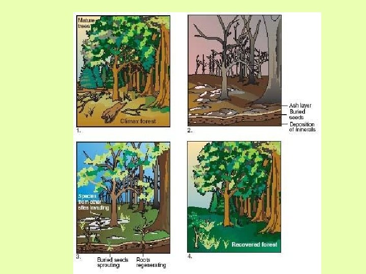 ECOLOGY • The first group of organisms to arrive after the devastation of an ecosystem is typically the lichen and moss. These would be known as the pioneer community. • Climax community is a stable mature community which has reached equilibrium after having evolved through stages and adapted to its environment.