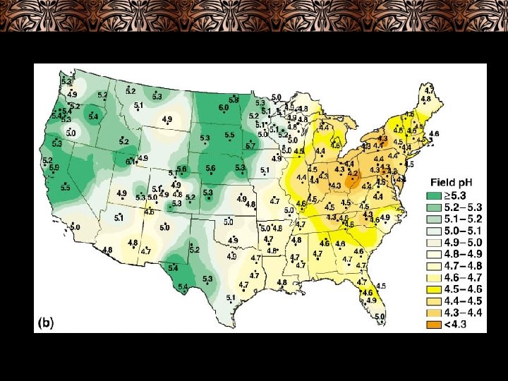 • Acid rain or acid deposition (deposition of both wet or dry acid) • Sulfur dioxide and nitrogen oxide combines with water vapor in the atmosphere to form sulfuric acid and nitric acid • Acid often falls hundreds or thousands of miles away (pollutants carried by the wind) dissolved in rain (snow, fog) or as microscopic dry particles • Acid eats away statues, buildings, damages trees and crops, kills life in lakes • Lakes become too acid to support life • Acid rain washes away essential nutrients and kills microbes that recycle nutrients • Toxic metals (aluminum, lead, mercury, cadmium) dissolve easier in acid rain and run into lakes and streams – accumulates in fish leading to biological magnification