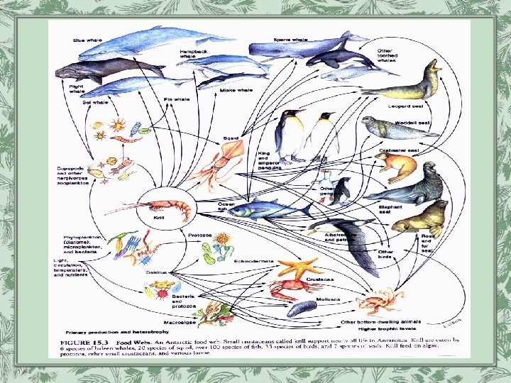 A food web • Many food chains tied together (overlapping food chains) • Many organisms feed on more than one species.