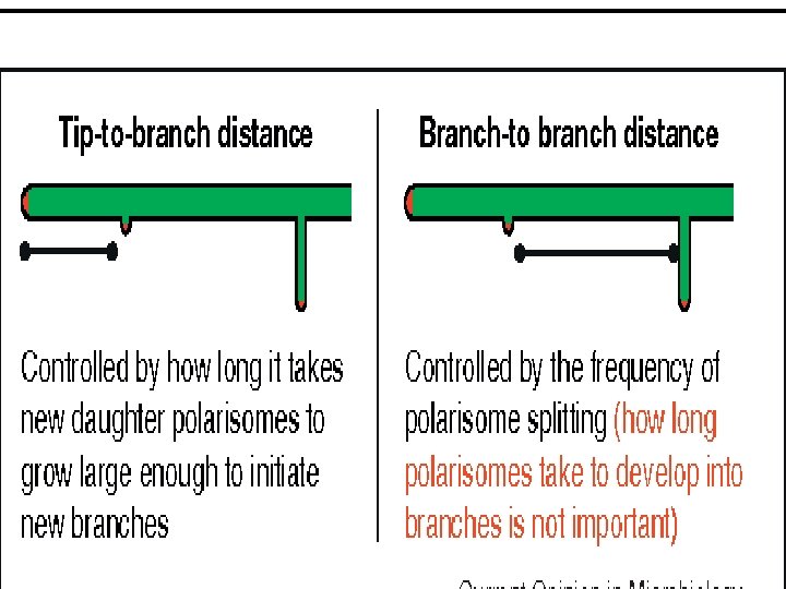 Lateral branching • The predominant branching pattern exhibited by fungal hyphae is lateral branching, whereby new branches emerge from sites distal to the hyphal tip • Occur when a potential site is far enough removed from the tip so as to escape the effects of these factors. • New branches emerge adjacent to septa • appears to be associated with the de novo formation of a Spitzenkorper near the incipient branch site, Apical branching • The emergence of a branch from the hyphal tip is referred to as apical branching • Occurs in response to the abnormal accumulation of exocytic vesicles at the hyphal tip. • They accumulate of vesicles leading to the formation of a new tip • apical branching is triggered by the temporary loss of the Spitzenkorper at the tip
