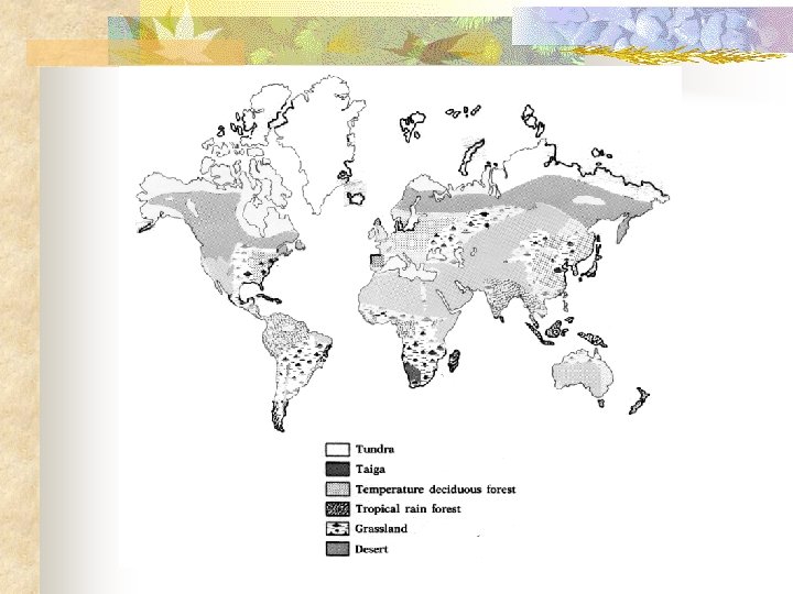 Abiotic Factors n n Nonliving factors in an environment Examples: n n n Air currents Temperature Moisture Light Soil
