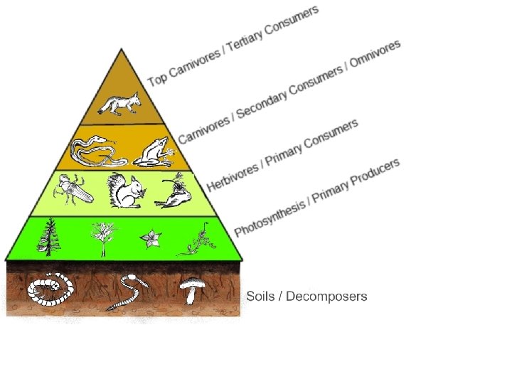 • Each step in an energy pyramid is called a TROPHIC (feeding) LEVEL • PRODUCERS always make up the first trophic level.