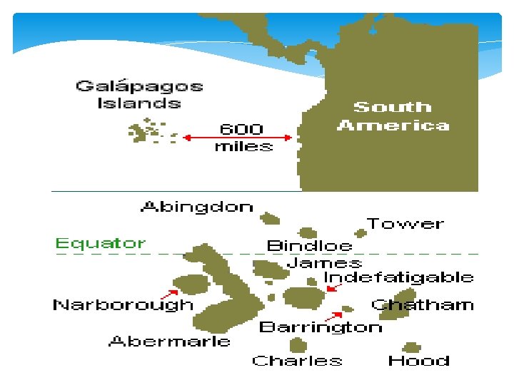 Darwin’s Finches v. Each species of finch lives on a different island, each island has a different environment. v Certain beaks are an advantage - based on the food available on that island.